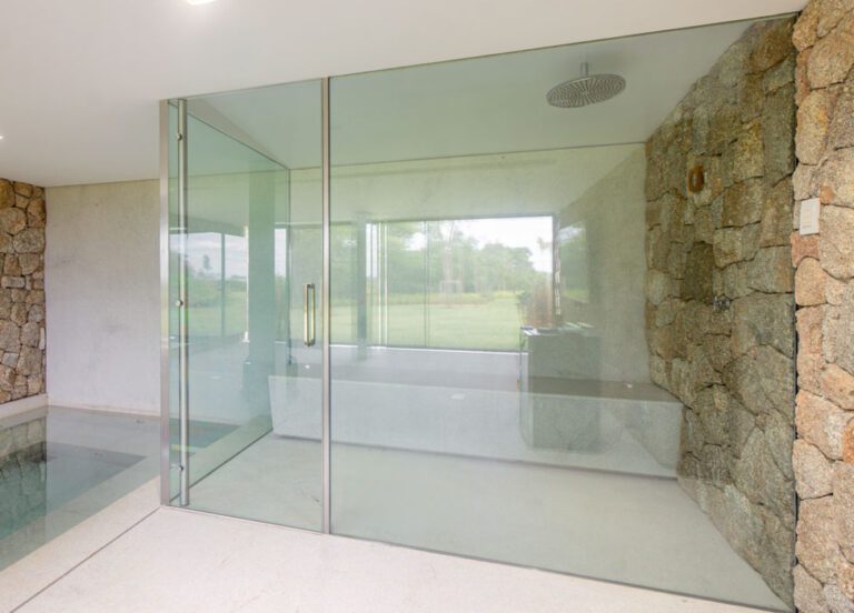 Sauna de vidro com fechamento em vidro insulado anti-embaçante. Amplia a sensação de espaço, valoriza a estética e garante segurança. Peça um orçamento!
