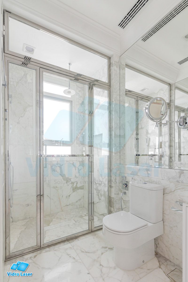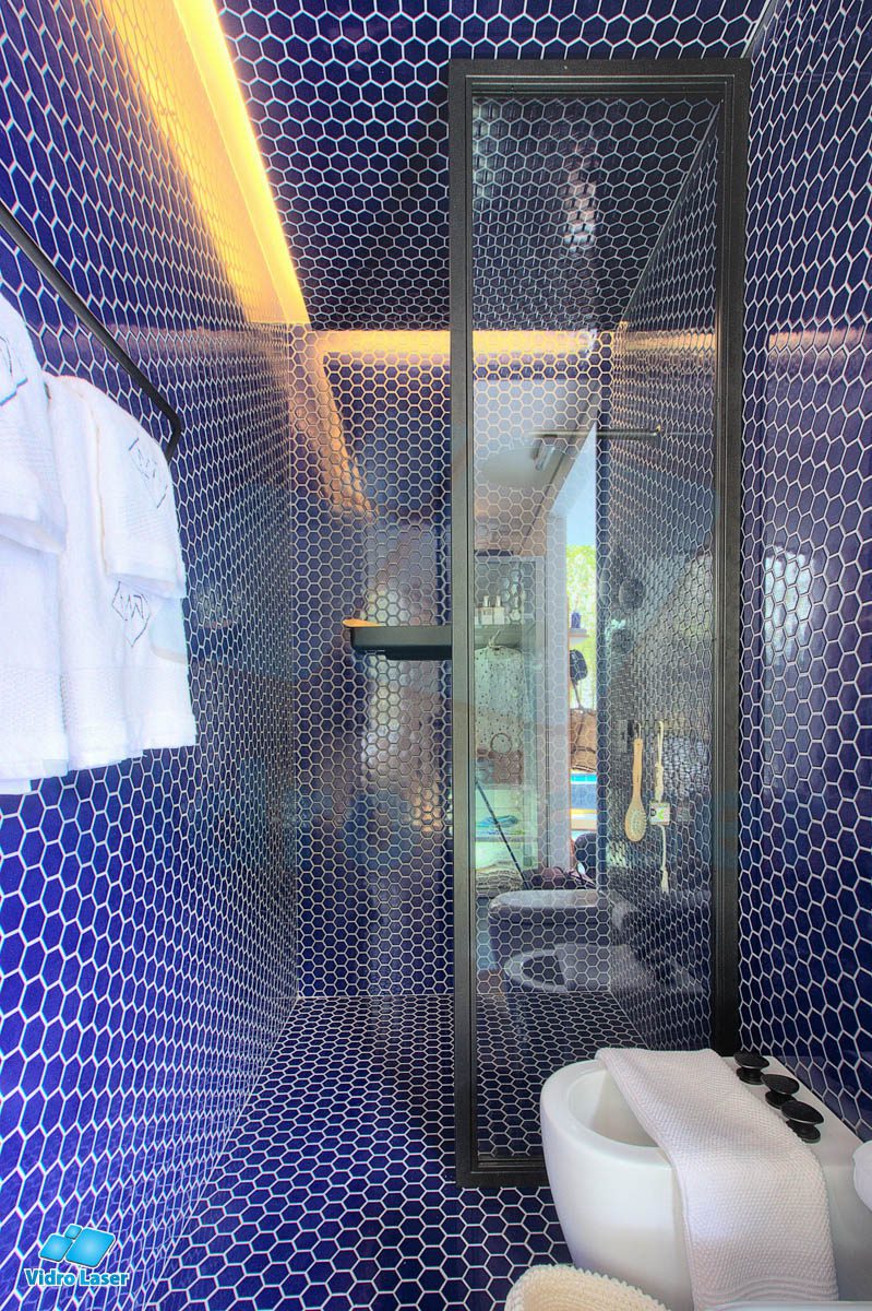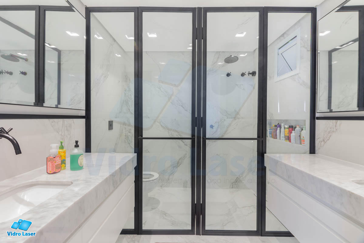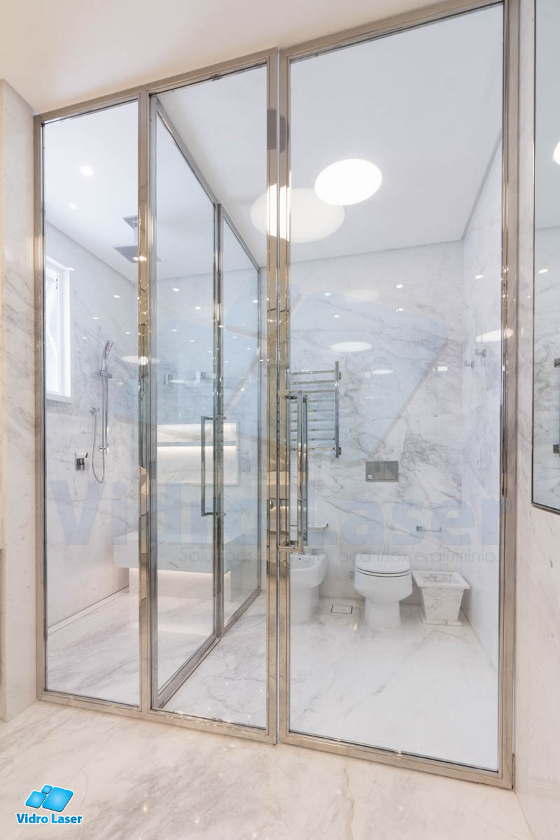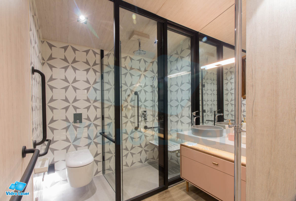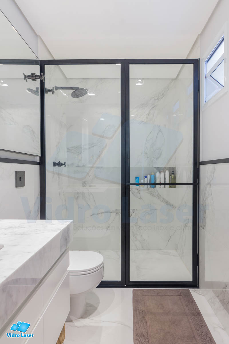 Tenha seu box em caixilhos personalizados decorando seu banheiro.