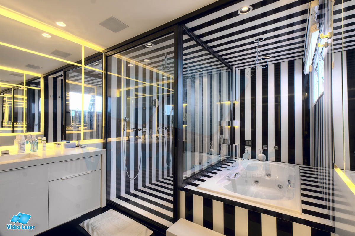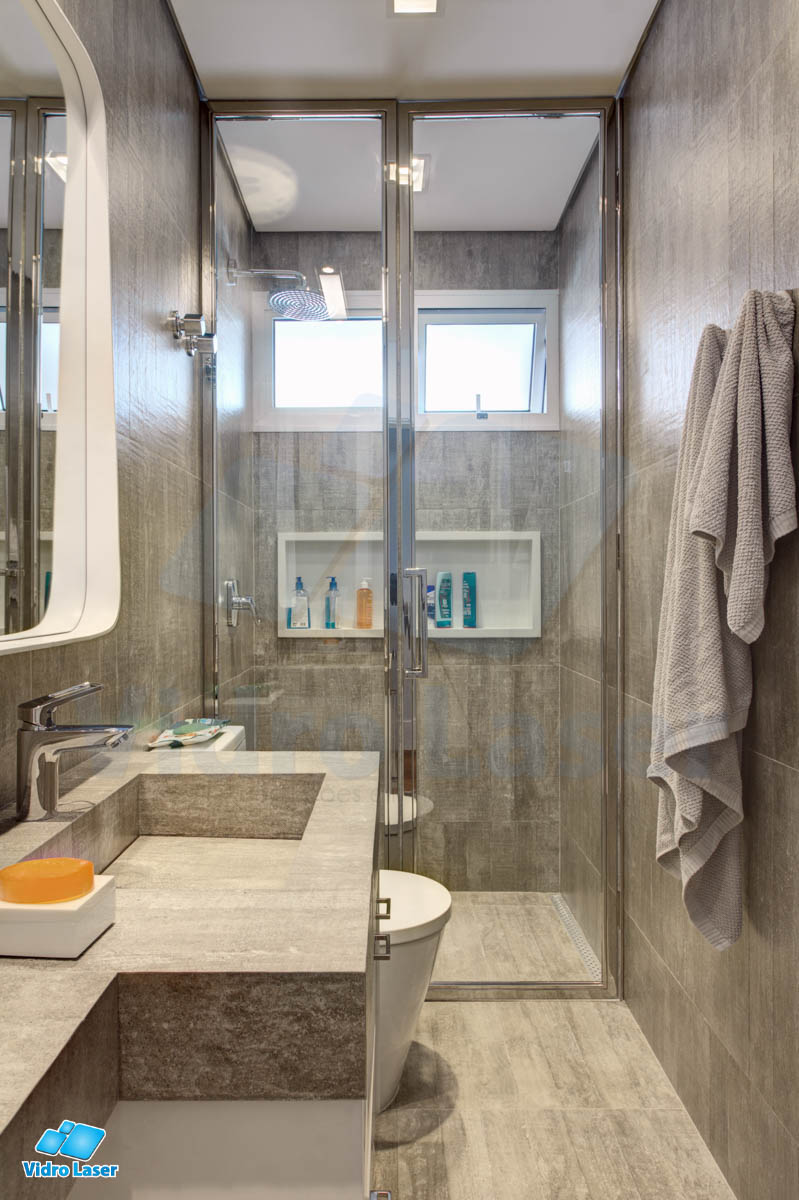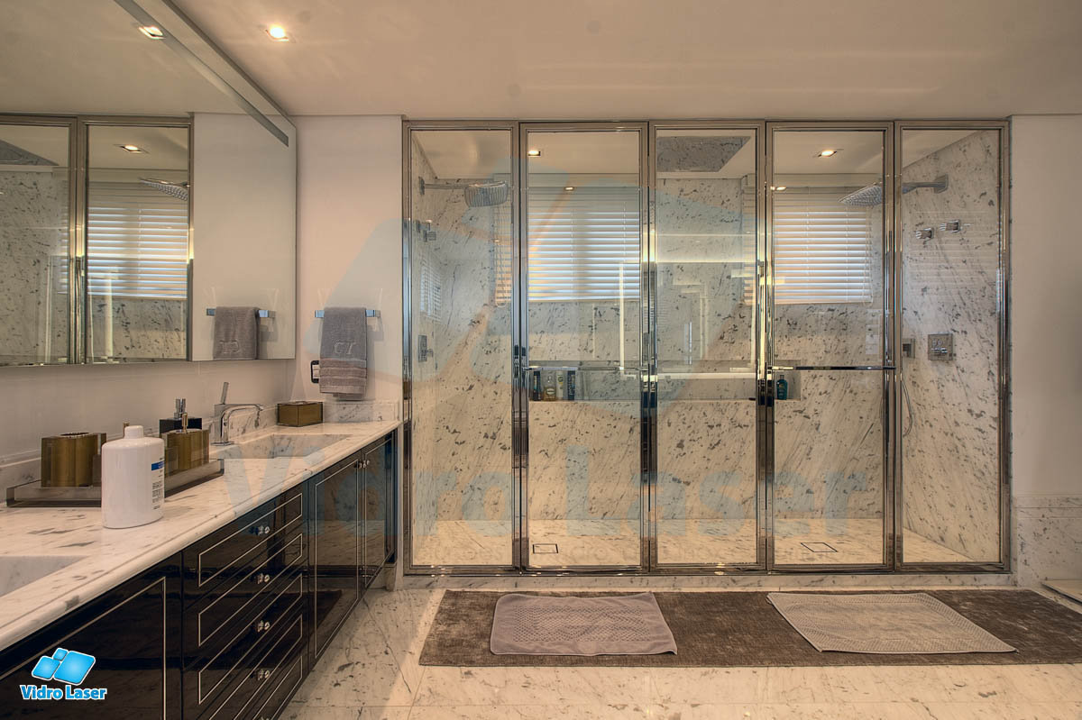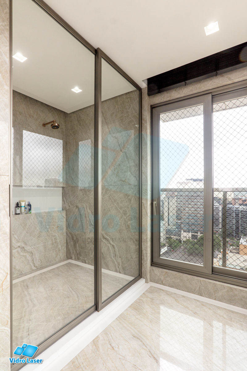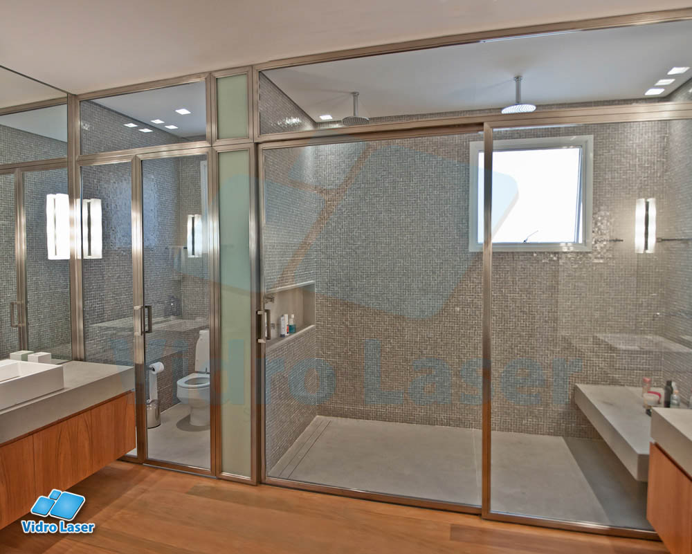 Tenha seu box em caixilhos personalizados decorando seu banheiro.