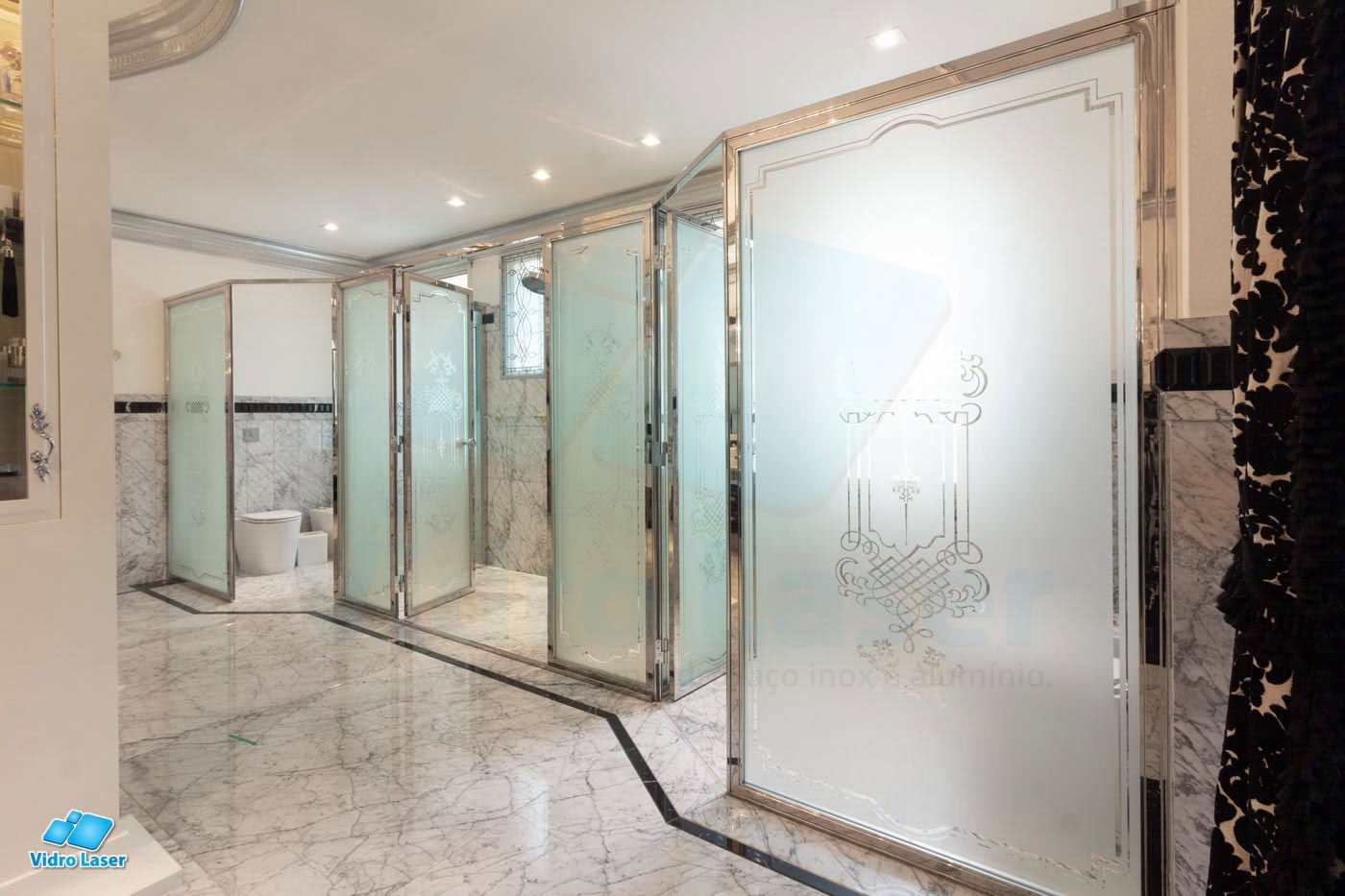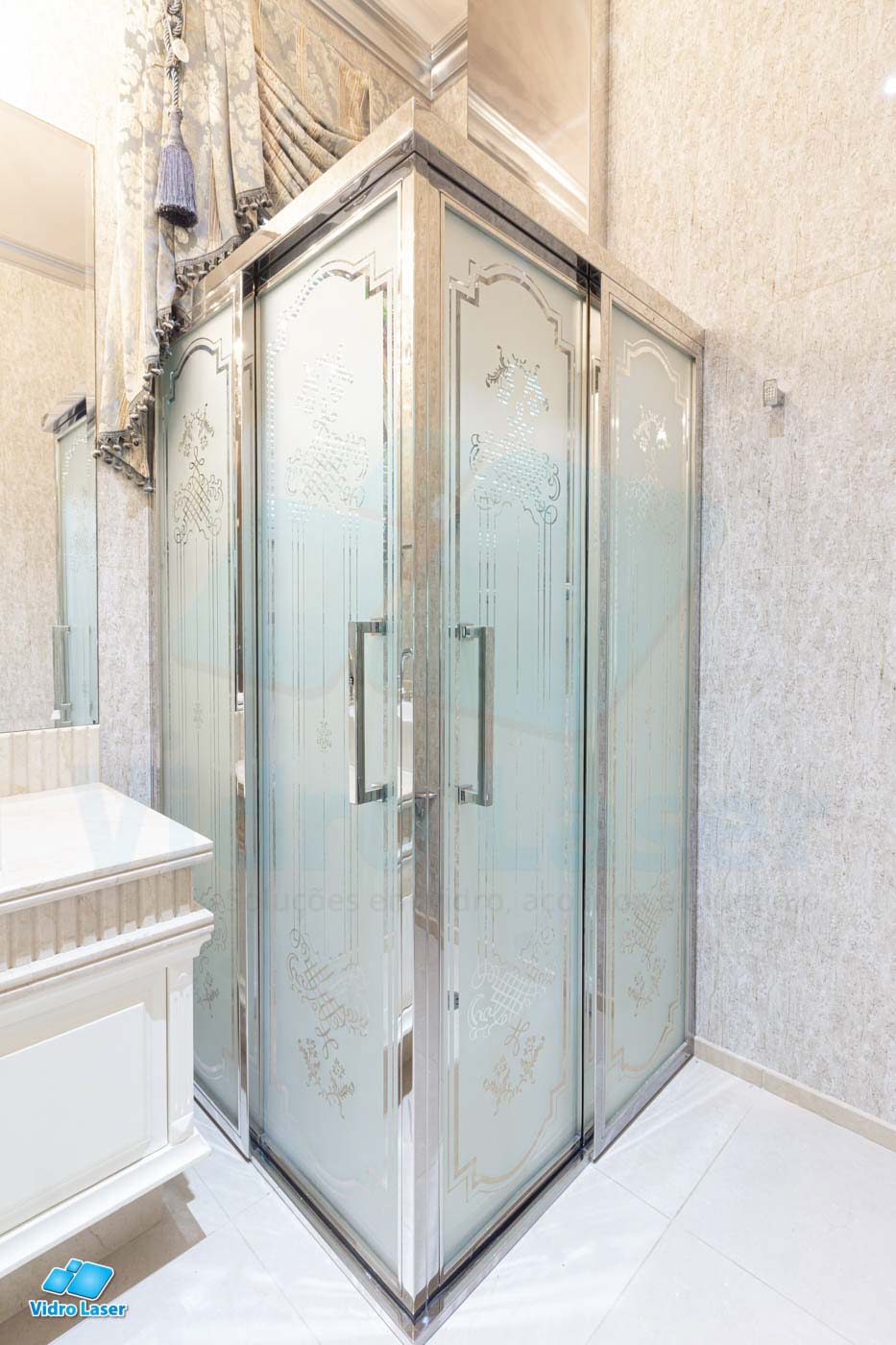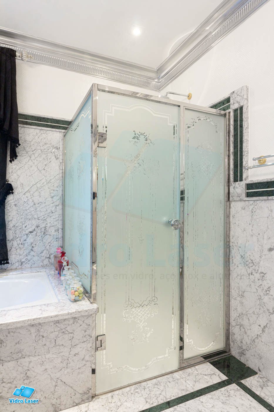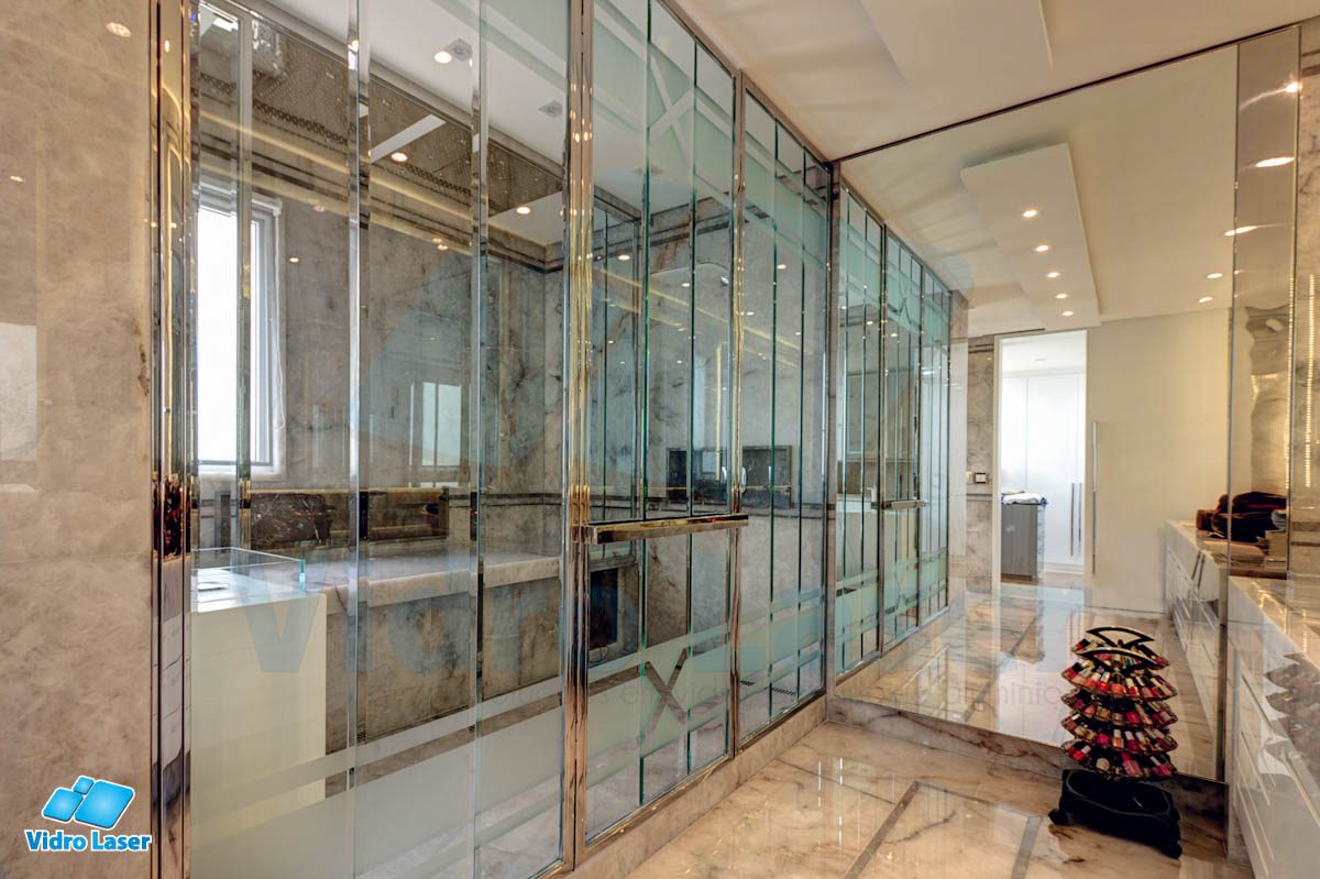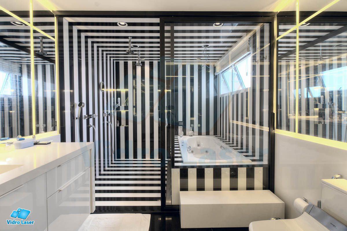 Tenha seu box em caixilhos personalizados decorando seu banheiro.