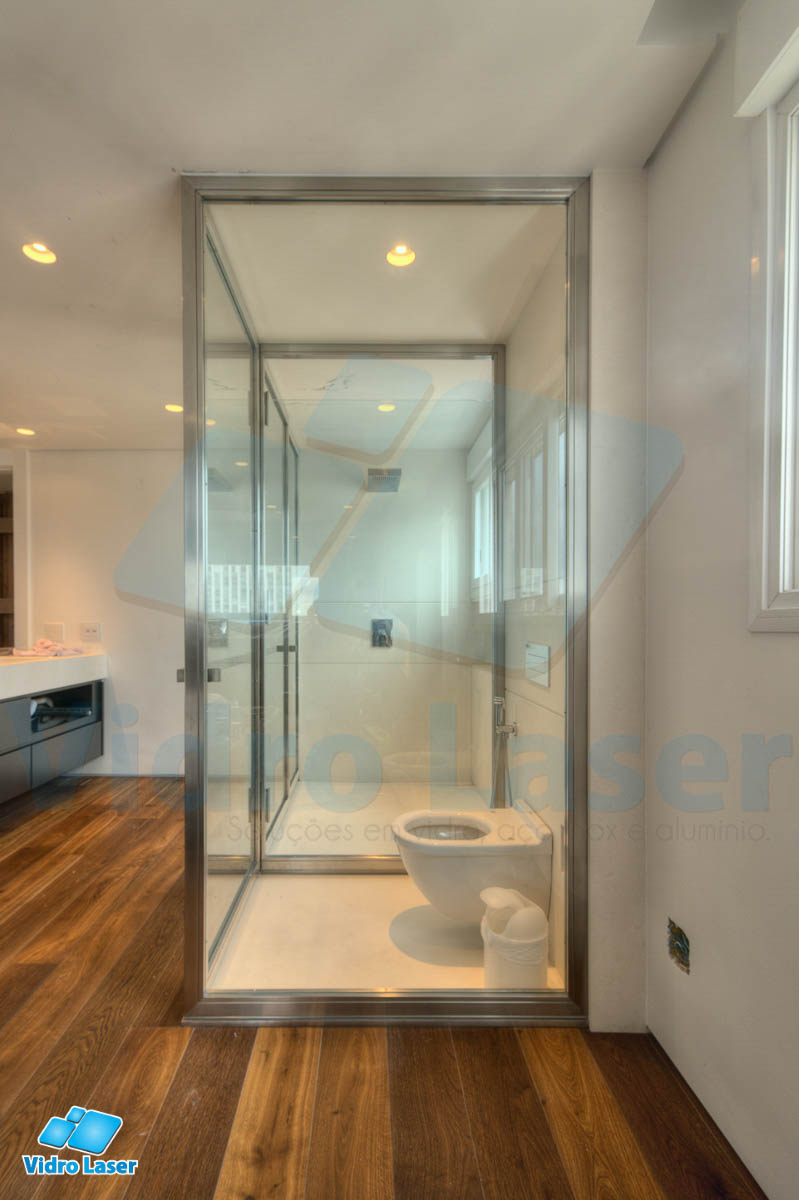 Nossa linha principal de box para banheiro. Com acabamento superior em aço inox polidos, escovado ou com pintura automotiva, extremamente funcional, baixa manutenção além de ser o box mais seguro do mercado.