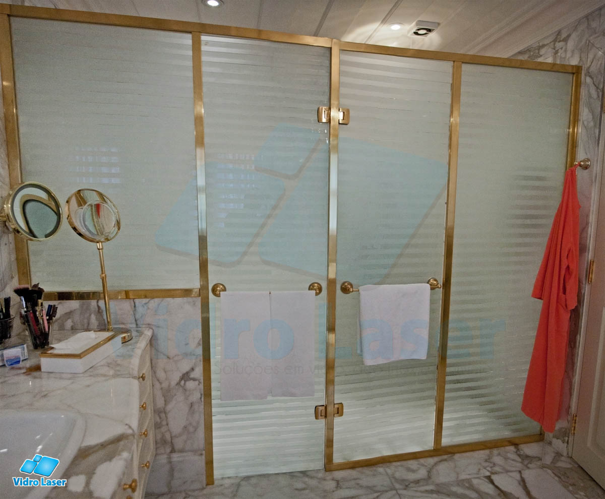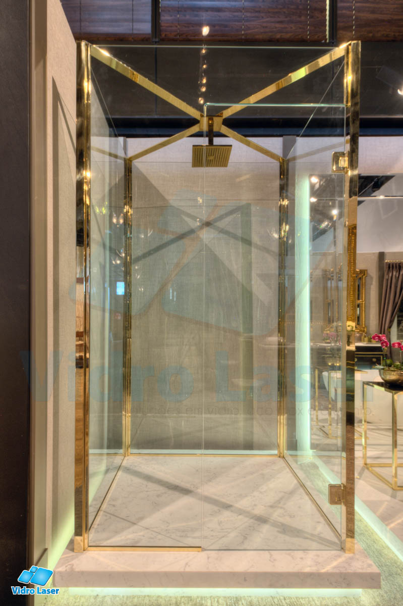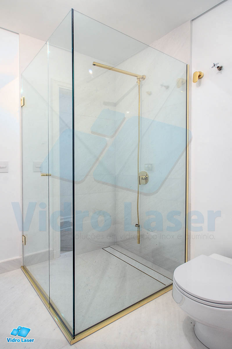 As ferragens e perfis do seu box Vidro Laser podem ser em latão e cobre também.