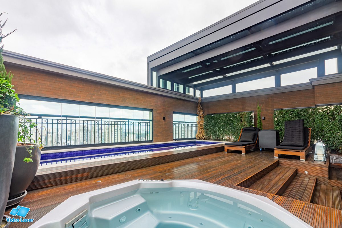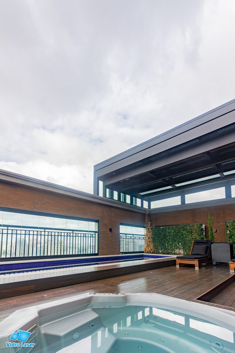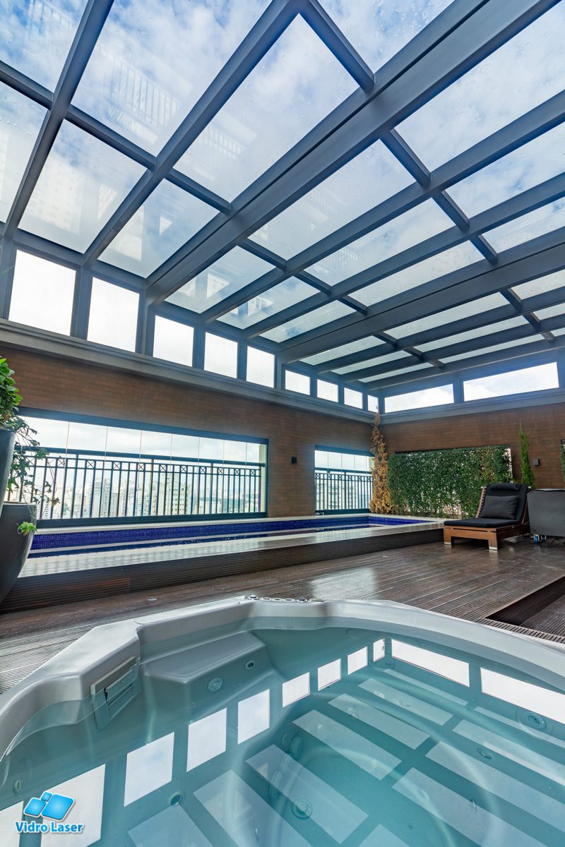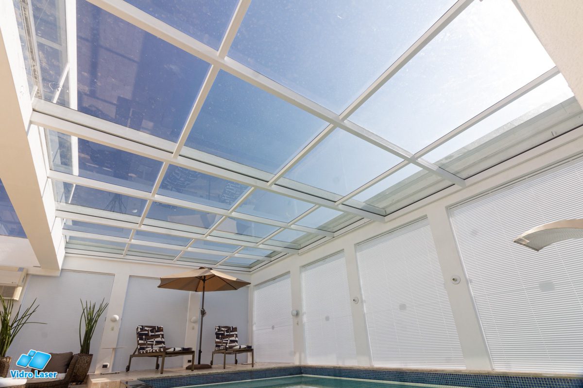O vidro deixa o ambiente muito quente? Não necessariamente. Recomendamos o uso de vidros com proteção solar (controle térmico) para o seu teto retratil para piscina. Eles bloqueiam os raios UV prejudiciais e reduzem a entrada de calor, mantendo a luminosidade sem criar um “efeito lupa” desconfortável.