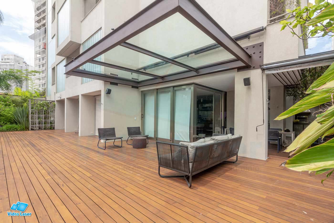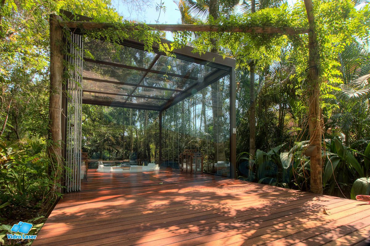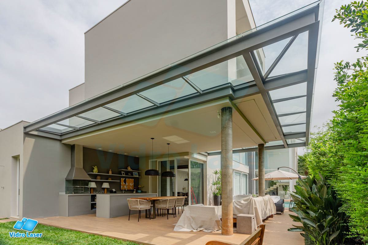 Área externa: Quer usar uma área externa de sua casa mesmo em dias de chuva? Coberturas de vidro! Você vai garantir a luminosidade natural não perderá a vista do céu e para não se tornar uma estufa existem as películas de proteção solar.