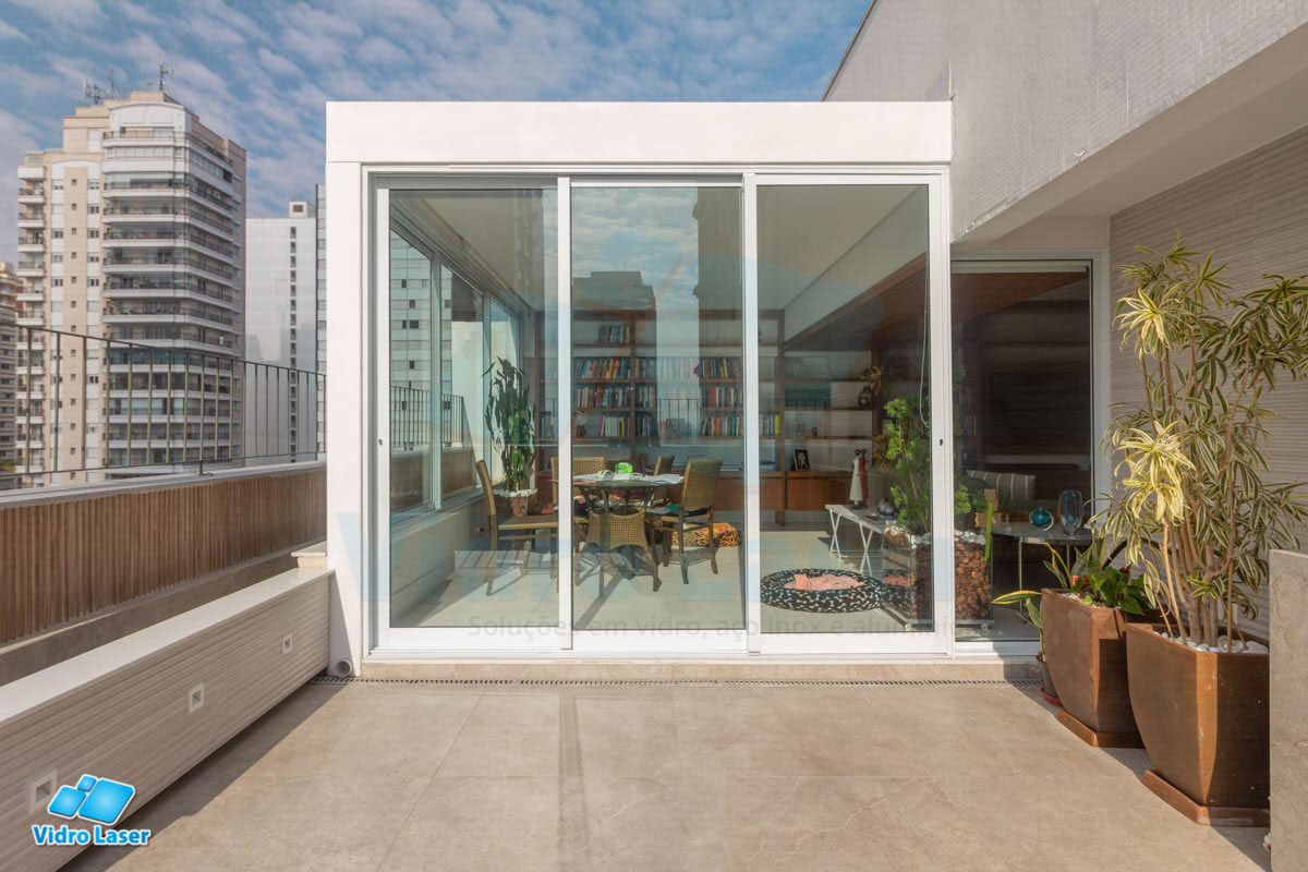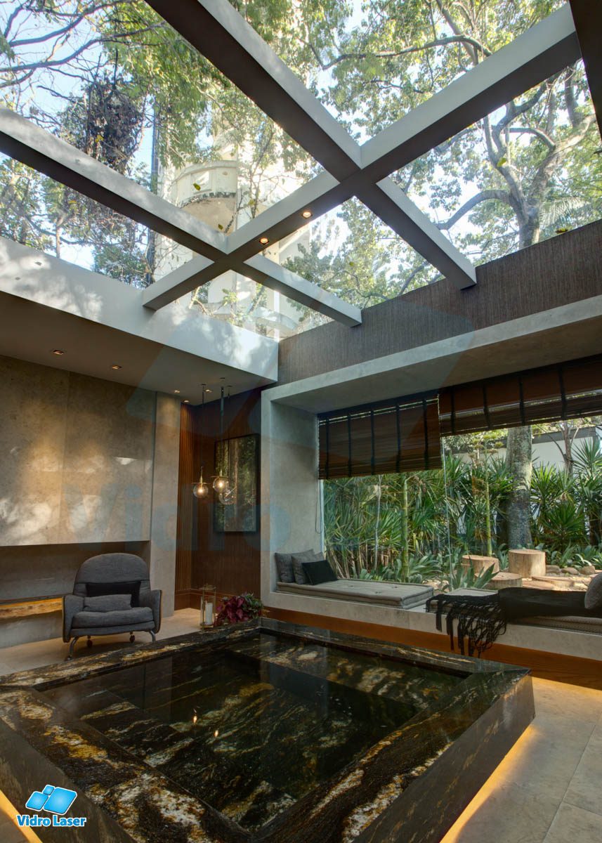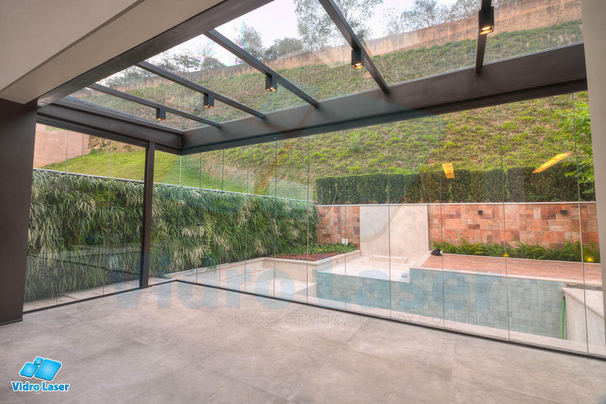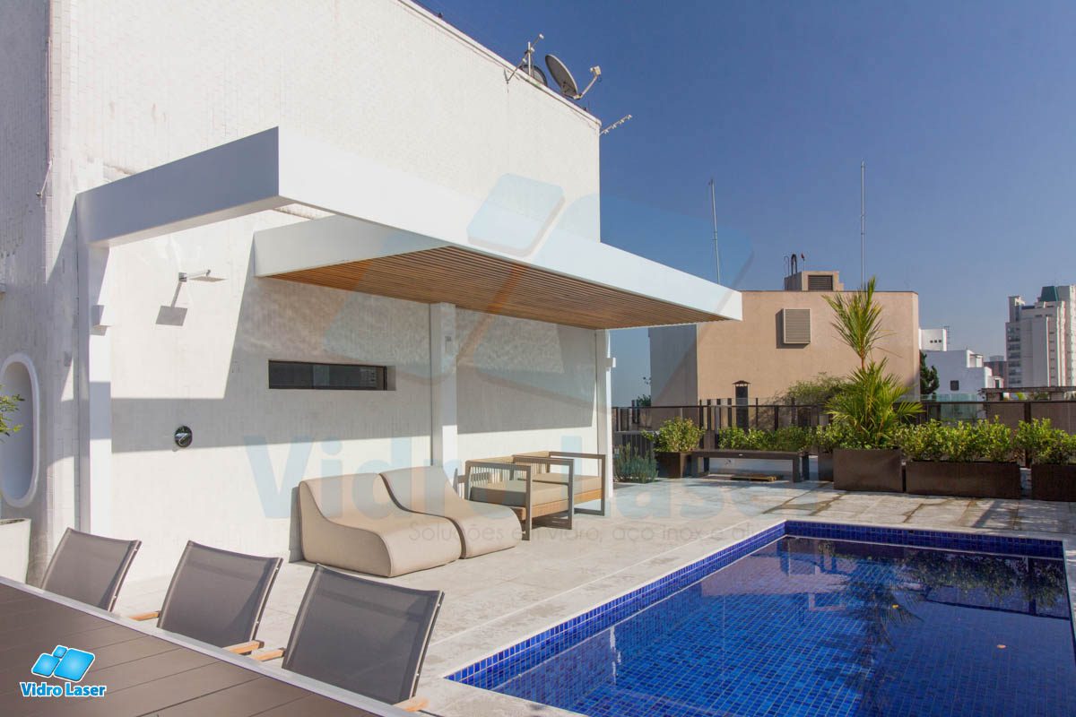 Área externa: Quer usar uma área externa de sua casa mesmo em dias de chuva? Coberturas de vidro! Você vai garantir a luminosidade natural não perderá a vista do céu e para não se tornar uma estufa existem as películas de proteção solar.