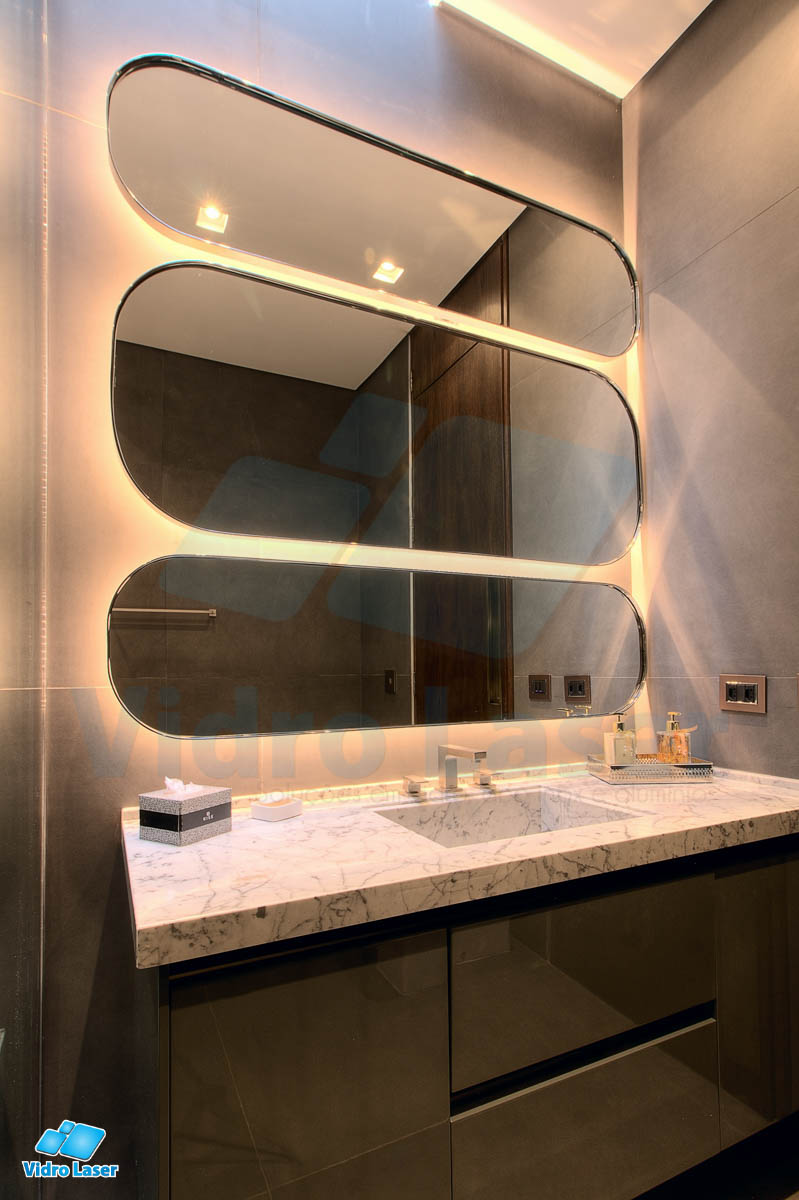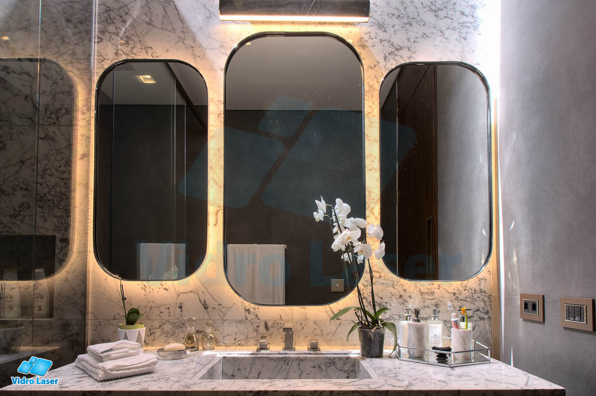 Espelhos com moldura em Aço Inox, Latão, Cobre e Outros Metais.